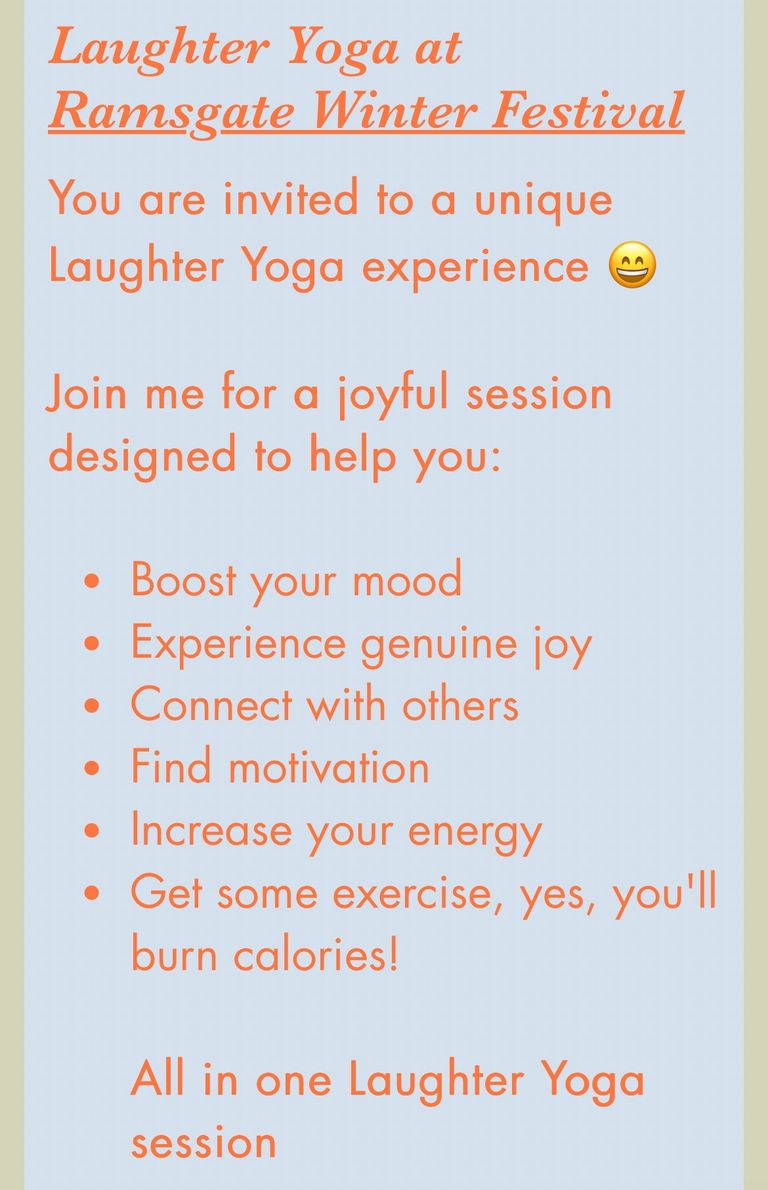 A fun, uplifting experience that combines laughter with deep breathing and gentle stretches (that's the Yoga part - please note, this is not a traditional yoga class and you won't need a mat!).